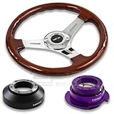 NRG-SRK-141H+0151CH+250PP, NRG Innovations 13" 330mm Deep Dish Style Wood Grain Silver Spokes Racing Steering Wheel Combo with 6 Hole Short Hub Adapter with Gen 2.5 Purple Quick Release Kit SRK-141H