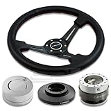 NRG-SRK-E36H+200SL+101LS+018R, NRG Innovations 13.78" 350mm 3" Deep Dish Style Black Leather Red Stitch Black Spokes Racing Steering Wheel Combo with 6 Hole Short Hub Adapter with Gen 2.0 Silver Quick Release with Silver Lock Hub Kit SRK-E36H